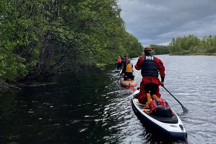 Die erste aufregende Aktivität des Tages ist Stand-Up-Paddleboarding (SUP) auf unserem ruhig gelegenen Rahajärvi-See – die perfekte Gelegenheit, die arktische Landschaft genießen zu können, während sie seichte über das Wasser gleiten. Die SUP-Tour richtet sich sowohl an Anfänger als auch an erfahrene Paddler und bietet so ein inklusives und angenehmes Erlebnis für alle. Bei dem gemeinsamen Mittagessen trifft die Gruppe wieder zusammen. Eine gelegene Möglichkeit sich zu stärken und gleichzeitig mit den anderen Abenteurern auszutauschen. Nach dem Mittagessen geht der Tag mit Schnorcheln weiter.